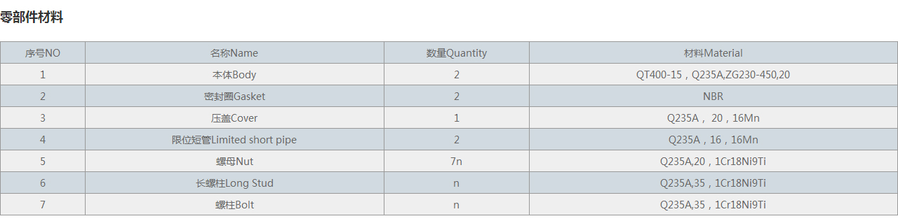 【產品材質】:碳鋼,球墨鑄鐵,不銹鋼.